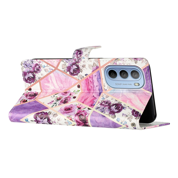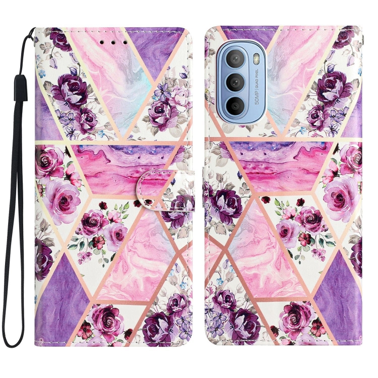 Estuche para Motorola Moto G62 de Cuero con Dibujo Coloreado Mármol Púrpura