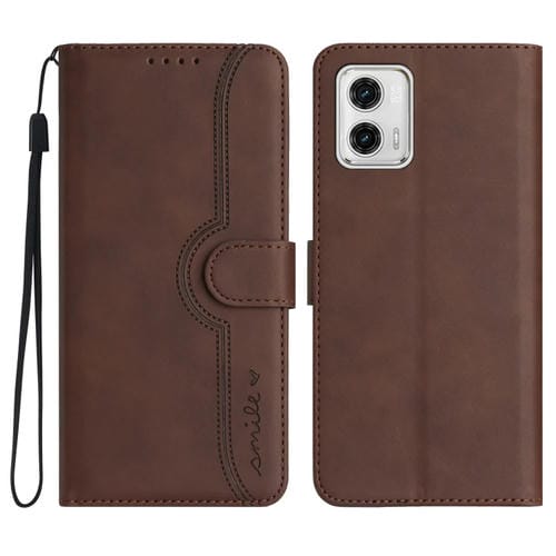 Funda de Cuero para Motorola Moto G73 con Sensación de Piel y Patrón de Corazón (Marrón)