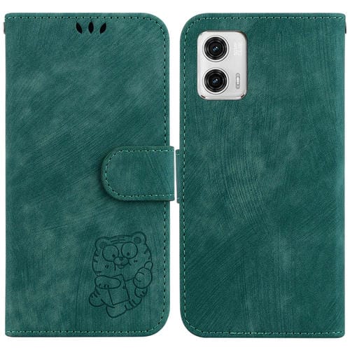 Funda de Cuero en Relieve para Motorola Moto G73 Little Tiger (Verde)