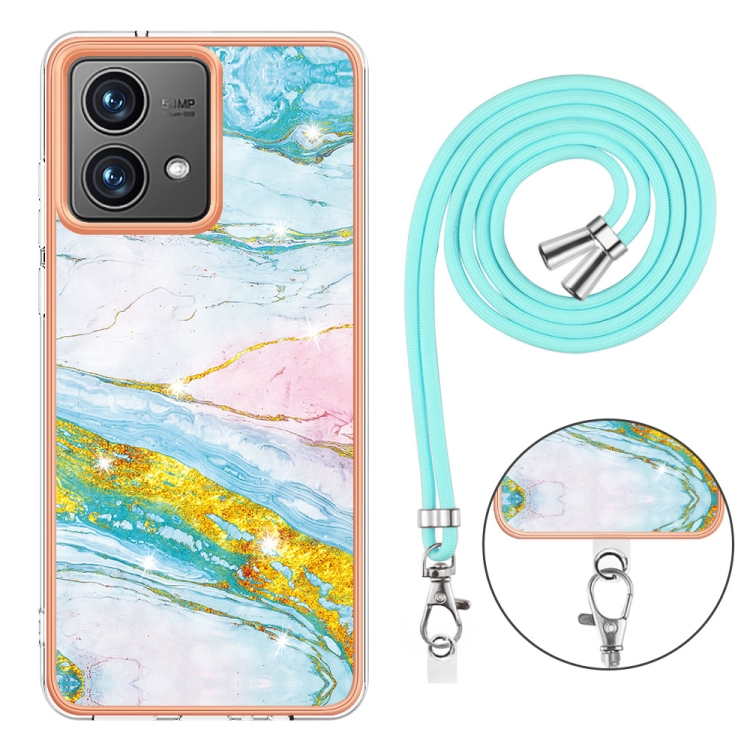 Estuche para Motorola Moto G84 Imd Doble Cara Mármol Galvanizado con Cordón (Verde)