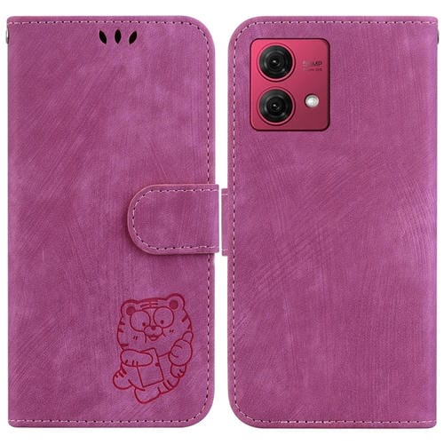 - 1x Funda de Cuero para Motorola Moto G84 con Relieve Little Tiger (Rojo Rosa)