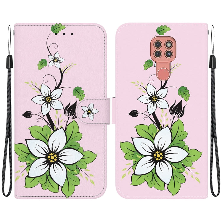 Funda para Motorola Moto G9 Play y E7 Plus de Cuero con Dibujo Coloreado y Textura de Cristal (Lirio)