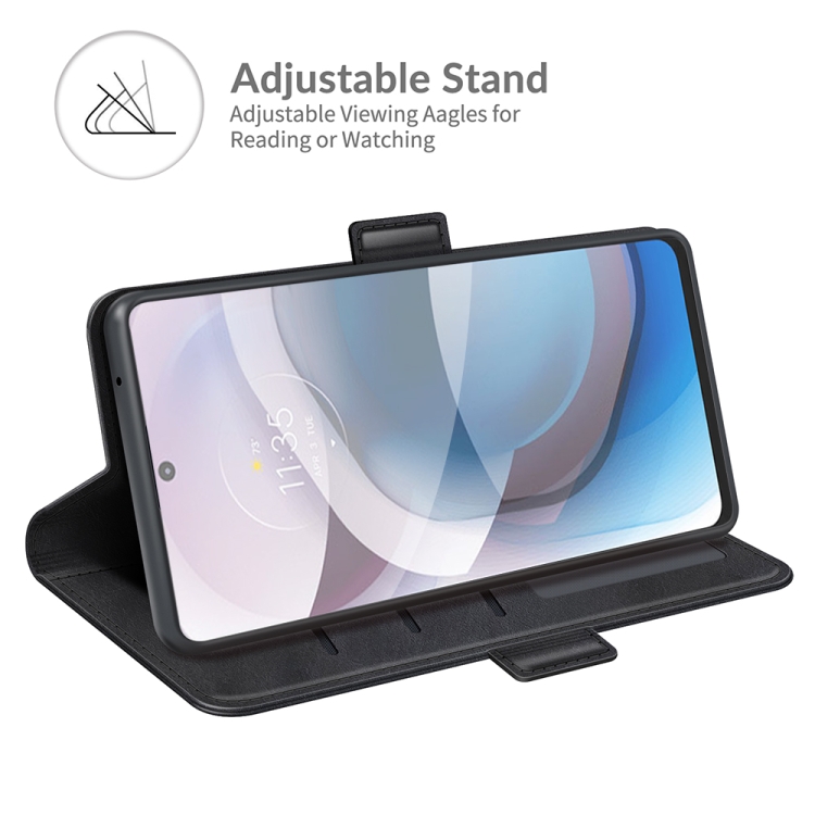 Para MOTOROLA MOTO ONE 5G ACE con hebilla magnética de doble lado de la funda de cuero con soporte y tragamonedas y billetera (negro)