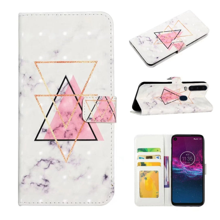 Funda de Cuero para Motorola Moto P40 Power con Dibujo 3D en Relieve (Mármol Triangular)