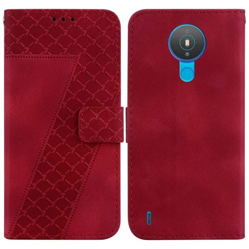 Estuche para Teléfono Nokia 1.4 de Cuero en Relieve en Forma de 7 (Rojo)