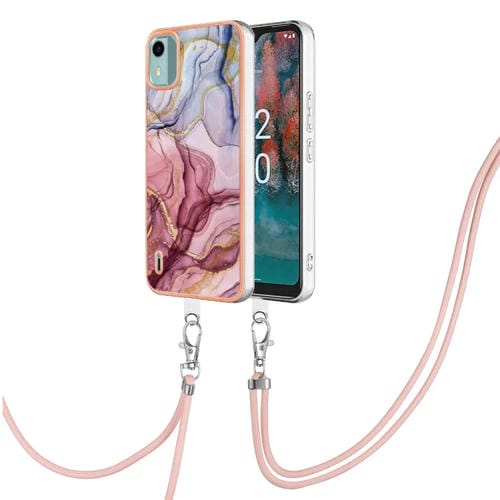 Estuche para Teléfono Nokia C12 IMD Doble Cara Mármol Galvanizado con Cordón (Rose Red)