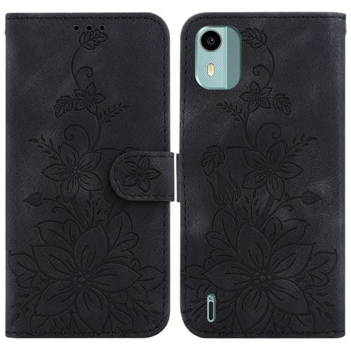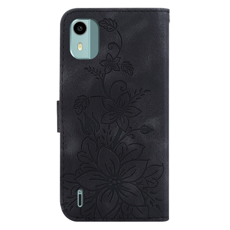 Funda de Cuero en Relieve para Teléfono Nokia C12 Lily (Negro)