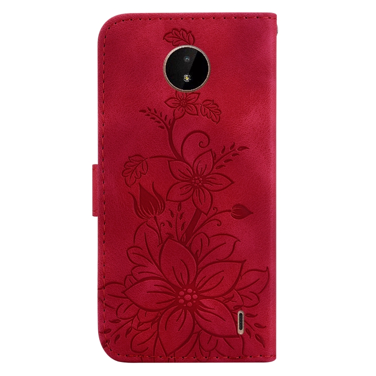 Funda de Cuero para Nokia C20 y C10 Lily en Relieve (Rojo)