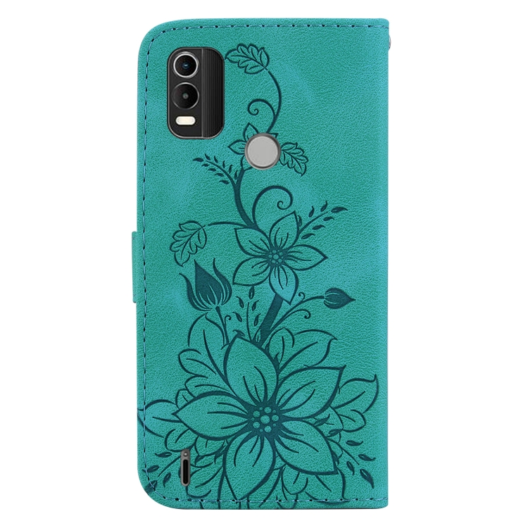 Funda de Cuero con Relieve Lily para Nokia C21 Plus (Verde)