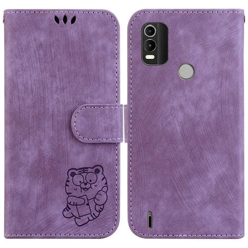 Funda para Teléfono Nokia C21 Plus de Cuero con Relieve Little Tiger (Púrpura)