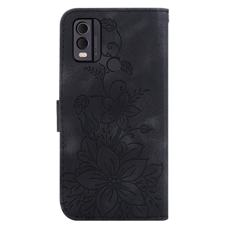 Funda de Cuero en Relieve para Nokia C22 Lily Teléfono (Negro)