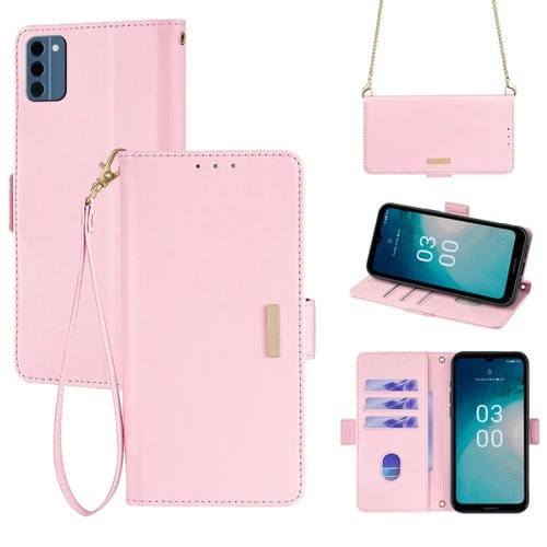 Funda para Nokia C300 4G con Cadena Cruzada de Cuero (Rosa)