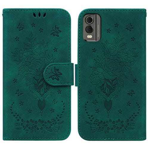 Caja de Teléfono para Nokia C32 Butterfly Rose de Cuero en Relieve (Verde)