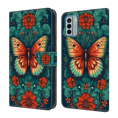 Funda de Cuero para Nokia G22 con Cristales Pintada Mariposa de Flores
