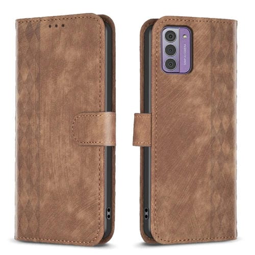 Estuche para Teléfono Nokia G42/G310 Cuero en Relieve a Cuadros (Marrón)