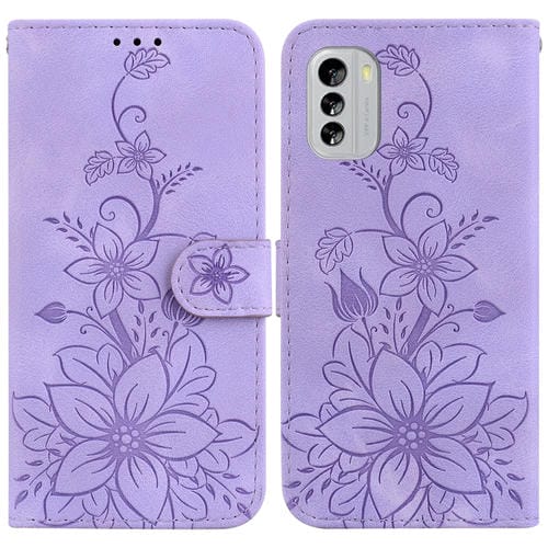 Funda de Cuero en Relieve para Nokia G60 Lily (Púrpura)