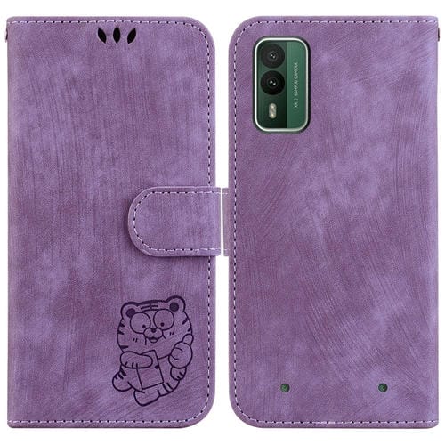 Funda de Cuero en Relieve para Nokia Xr21 Little Tiger Teléfono (Púrpura)