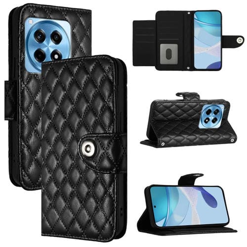 Funda para OnePlus 12R de Cuero con Tapa Textura Rómbica y Cordón (Negro)