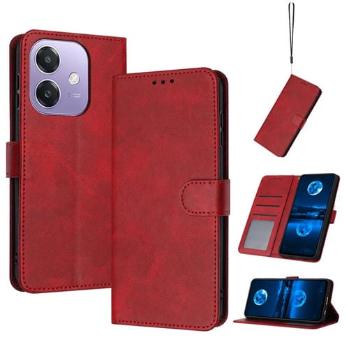 Para Oppo A3X Carcasa Sólida del Teléfono con Textura de Piel de Becerro (Rojo)