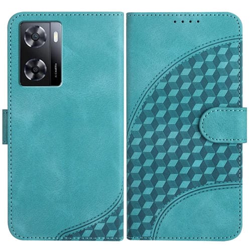 Para Oppo A57 4G Yx0060 Funda de Cuero para Teléfono con Relieve y Cabeza de Elefante con Cordón (Azul Claro)