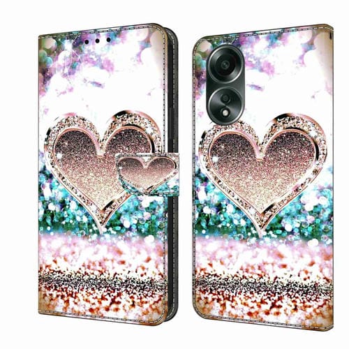 Para Oppo A58 4G Crystal 3D Funda Protectora de Cuero para Teléfono a Prueba de Golpes (Corazón de Diamante Rosa)