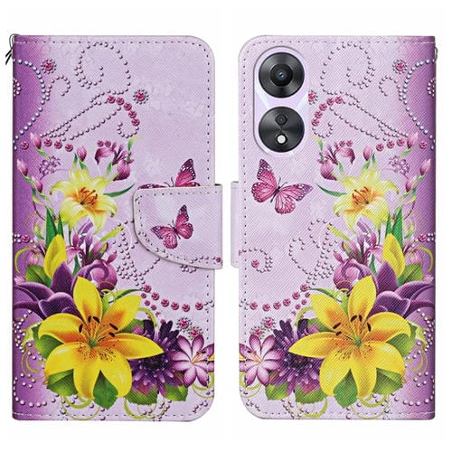 Para Oppo A58 4G Funda de Cuero para Teléfono con Patrón de Dibujo Coloreado (Mariposa de Flor Amarilla)