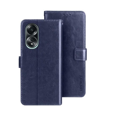 Para Oppo A58 4G Funda para Teléfono de Cuero con Textura Crazy Horse de Idewei Extranjero con Soporte (Azul)