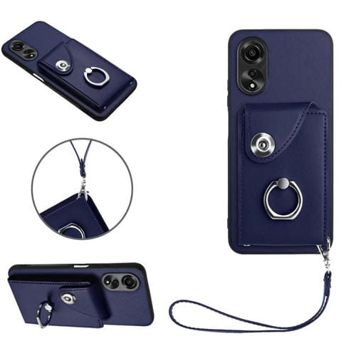 Para Oppo A58 4G Global Organ Card Bag Ring Holder Pu Funda para Teléfono con Cordón (Azul)
