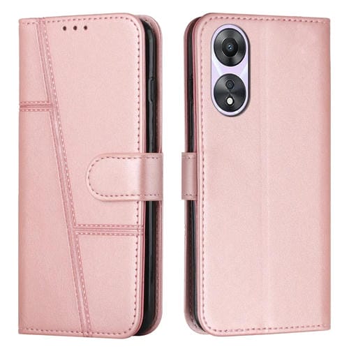 Para Oppo A58 / A78 Funda para Teléfono de Cuero con Hebilla y Textura de Becerro con Costura (Oro Rosa)
