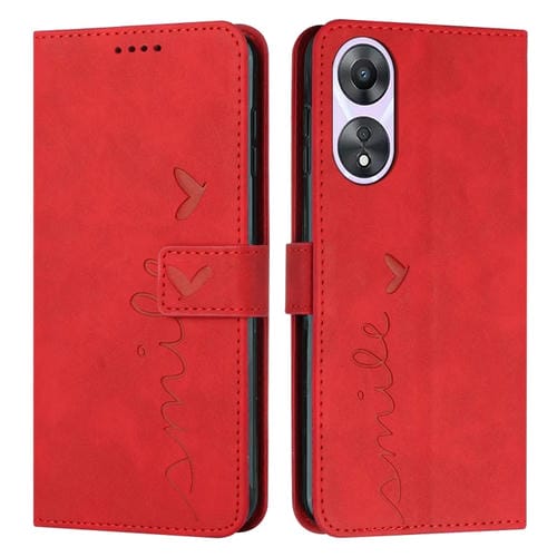 Para Oppo A58 / A78 Skin Feel Heart Funda de Cuero para Teléfono con Cordón Largo (Rojo)