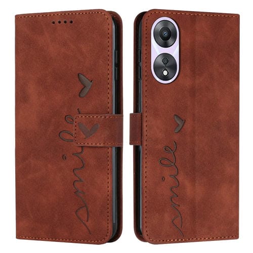 Para Oppo A58 / A78 Skin Feel Heart Funda para Teléfono de Cuero En Relieve con Cordón Largo (Marrón)