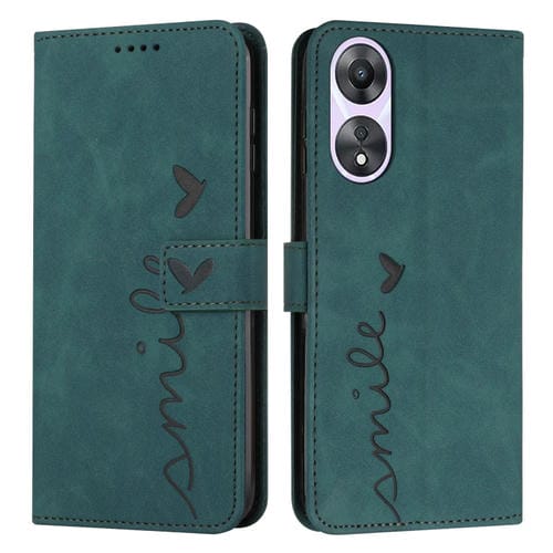 Para Oppo A58 / A78 Skin Feel Heart Funda para Teléfono de Cuero En Relieve con Cordón Largo (Verde)