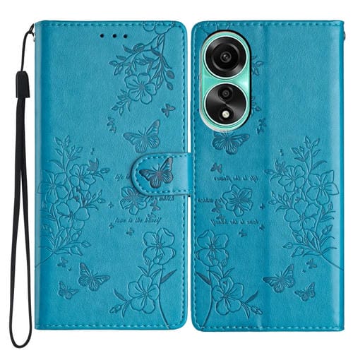 Para Oppo A78 4G Butterfly Love Flower Funda de Cuero para Teléfono En Relieve (Azul)
