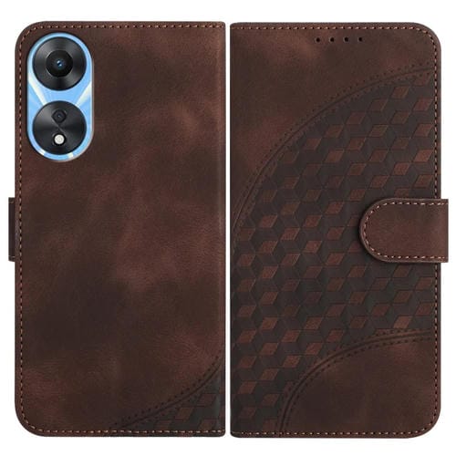 Para Oppo A78 4G Yx0060 Funda de Cuero para Teléfono con Relieve y Cabeza de Elefante con Cordón (Café)