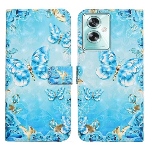 Para Oppo A79 5G Funda de Teléfono de Cuero con Dibujo 3D En Relieve al Óleo (Mariposas Azules)