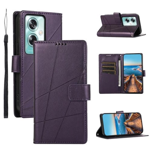 Para Oppo A79 5G Pu Funda de Teléfono con Línea En Relieve con Textura de Cuero Genuino (Púrpura)