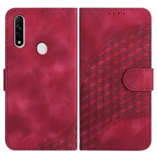 Para Oppo A8 / A31 Yx0060 Funda de Cuero para Teléfono con Relieve y Cabeza de Elefante con Cordón (Rojo Rosa)