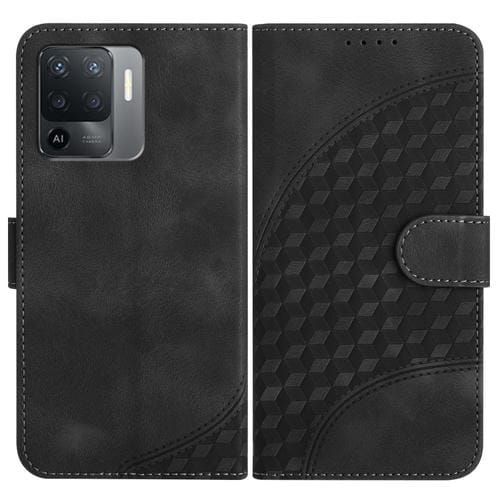Para Oppo A94 4G/F19 Pro 4G/Reno5 F 4G/Reno5 Lite Yx0060 Funda de Cuero para Teléfono con Relieve de Cabeza de Elefante y Cordón (Negro)