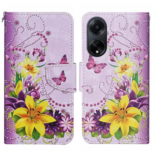 Para Oppo A98 Funda de Cuero para Teléfono con Patrón de Dibujo de Colores (Mariposa de Flor Amarilla)