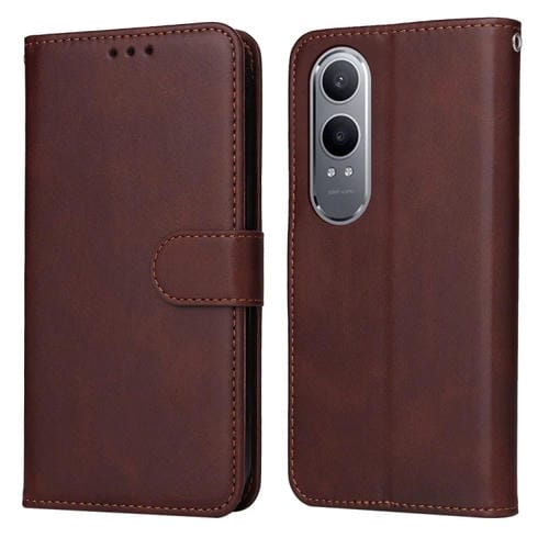 Para Oppo K12X Funda de Teléfono de Cuero con Tapa con Textura de Becerro Clásica (Marrón)