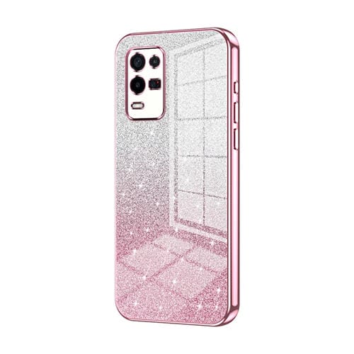 Para Oppo K9X Estuche para Teléfono Galvanizado con Polvo de Brillo Degradado (Rosa)