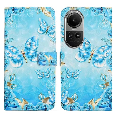 Para Oppo Reno10 5G / Reno10 Pro 5G Funda de Cuero para Teléfono con Dibujo 3D En Relieve de Aceite Global (Mariposas Azules)