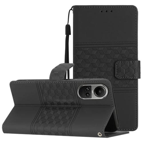 Para Oppo Reno10 5G / Reno10 Pro 5G Funda de Cuero para Teléfono con Sensación de Piel En Relieve de Diamante Global (Negro)
