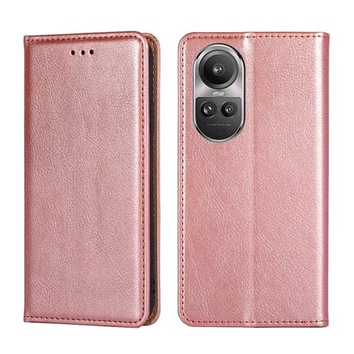 Para Oppo Reno10 5G / Reno10 Pro 5G Funda para Teléfono de Cuero Magnético de Color Sólido con Aceite Brillante Global (Oro Rosa)