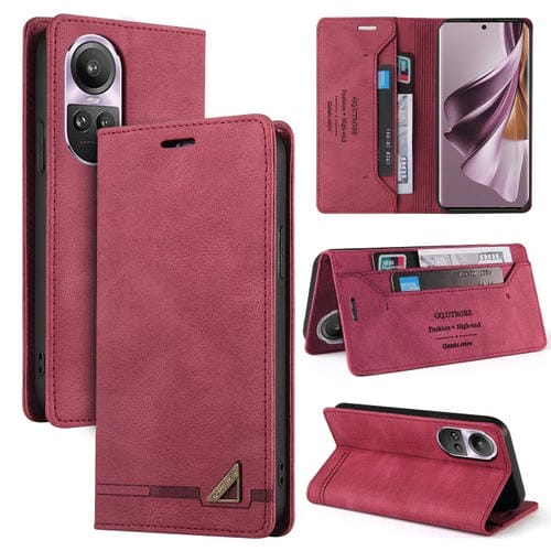 Para Oppo Reno10 Global Skin Feel Funda de Cuero con Tapa Horizontal con Cepillo Antirrobo y Soporte (Rojo Vino)