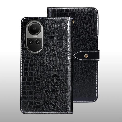 Para Oppo Reno10 / Reno10 Pro Funda para Teléfono de Cuero con Textura de Cocodrilo Global Idewei (Negro)