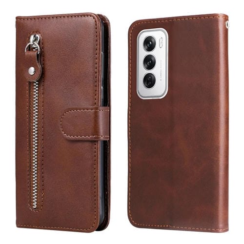 Para Oppo Reno12 5G Funda para Teléfono de Cuero con Cremallera y Textura de Becerro de Moda Global (Marrón)
