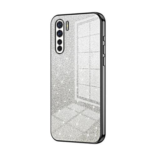 Para Oppo Reno3 4G / F15 / A91 Estuche para Teléfono Galvanizado con Polvo de Brillo Degradado (Negro)