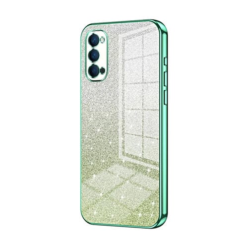 Para Oppo Reno4 Estuche para Teléfono Galvanizado con Polvo de Brillo Degradado (Verde)