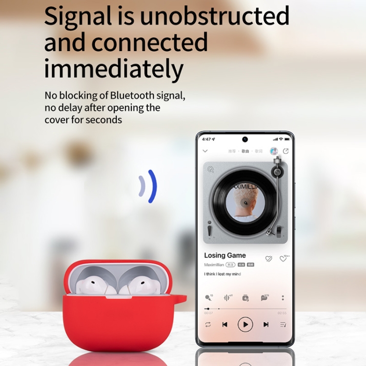 • 1x Funda de Silicona para Realme Buds T300 Auriculares Inalámbricos a Prueba de Golpes con Gancho (Rojo)